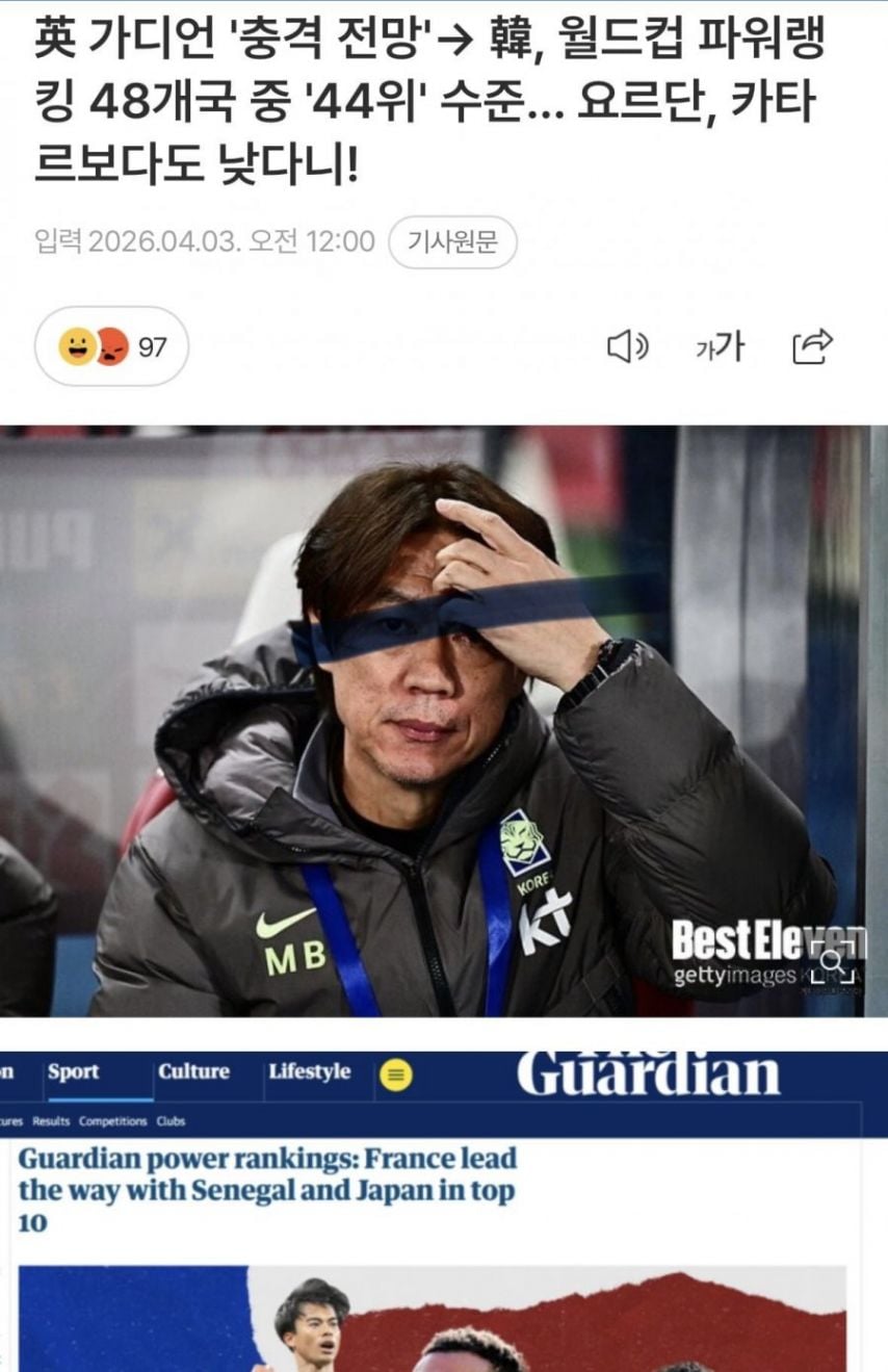 영국 가디언 '충격 전망' - 한국, 월드컵 파워랭킹 48개국 중 '44위' 수준.. < 이전글 목록으로 다음글 > 릴리즈 0 12 0 신고 12시간전 https://www.lottoangel.co.kr/bbs/app_free/8252 복사 경험하는 건데 몇 위면 어떠냐 ㅋㅋㅋㅋ 영국 가디언 '충격 전망' - 한국, 월드컵 파워랭킹 48개국 중 '44위' 수준.. 0 < 이전글 목록으로 다음글 >