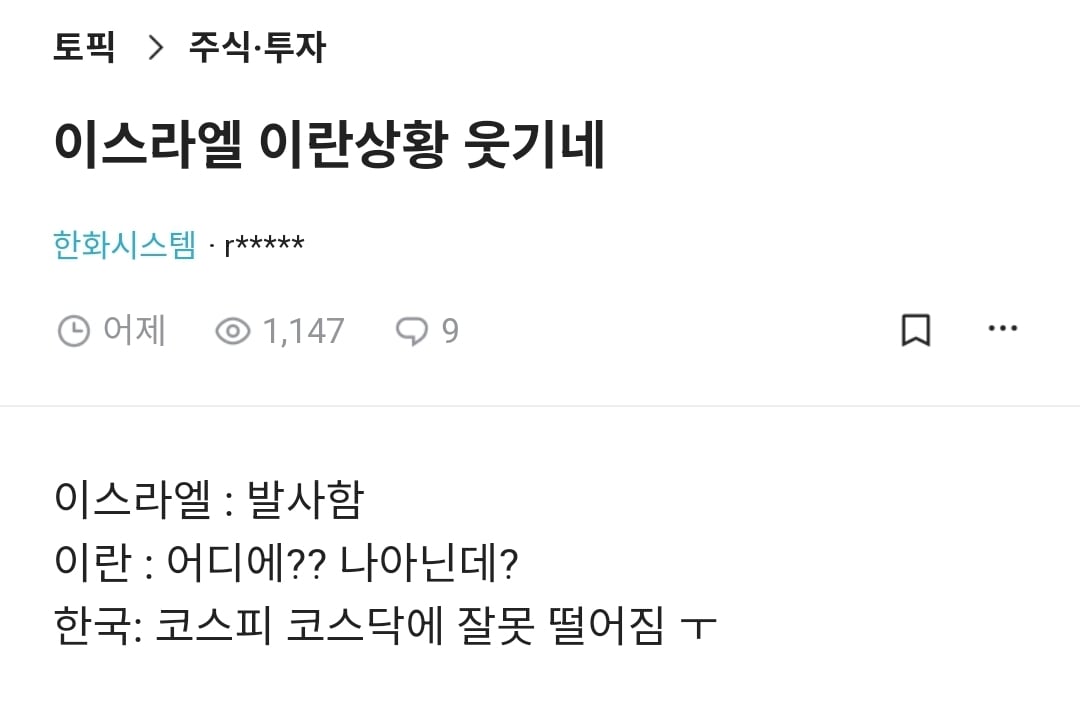 이스라엘 이란 상황 웃기네.. < 이전글 목록으로 다음글 > 삼삼호호 유머 0 915 0 신고 2024.04.20 09:07 https://www.lottoangel.co.kr/bbs/app_humor/5474 복사 https://www.teamblind.com/kr/post/이스라엘-이란상황-웃기네-6kB0cvVW 0 < 이전글 목록으로 다음글 >