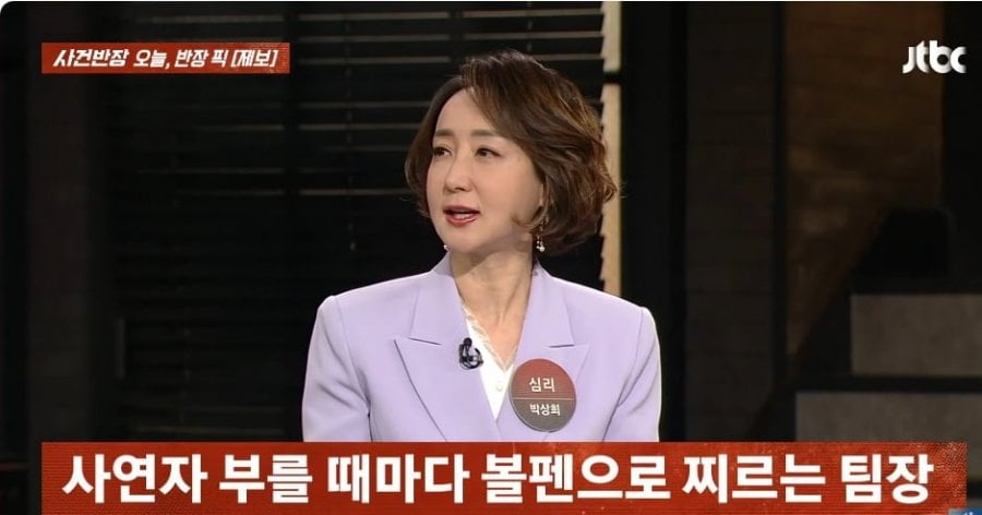 볼펜으로 막내 직원 찌르는 팀장