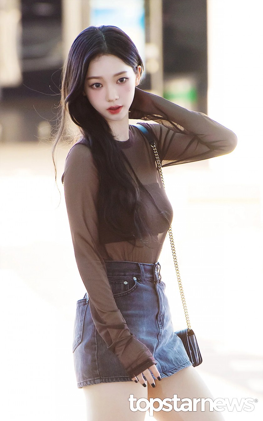 검정 튜브탑 시스루 공항패션 에스파 카리나